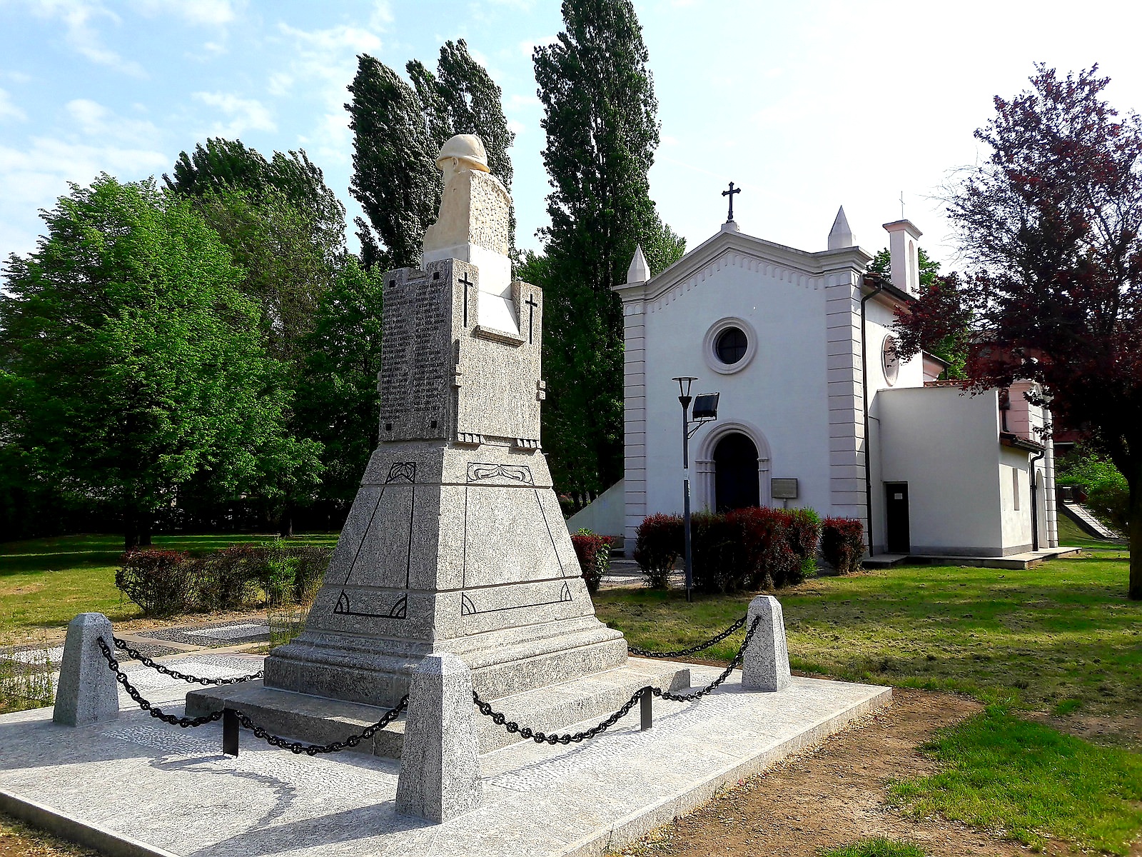 Nel 1922 per onorare il ricordo dei caduti della grande guerra dei Comuni di Gorla Primo e Precotto, venne realizzato un monumento che fu collocato all'interno del cimitero, vicino alla piccola chiesa di Santa Maria Maddalena, un tempo cappella del cimitero e successivamente soppresso il cimitero posizionato all'interno dell'attuale giardino Maddalena.