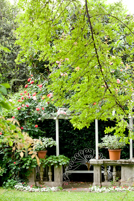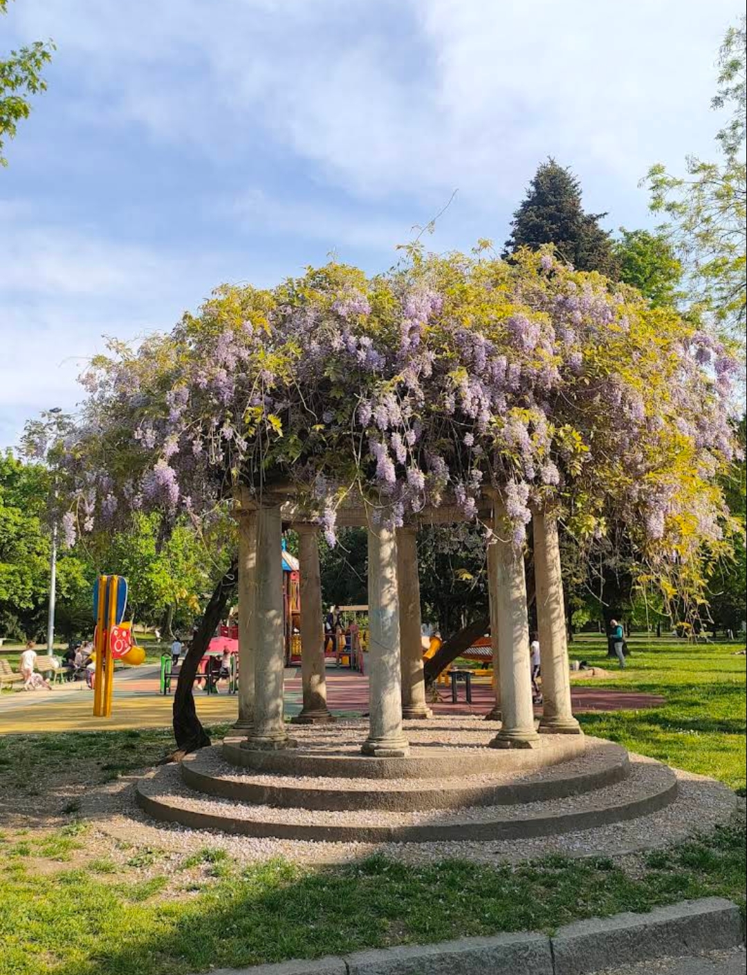 Il tempietto, visibile all'interno del Parco Villa Finzi, risulta particolarmente grazioso in primavera quando è ricoperto dai fiori di glicine centenari.