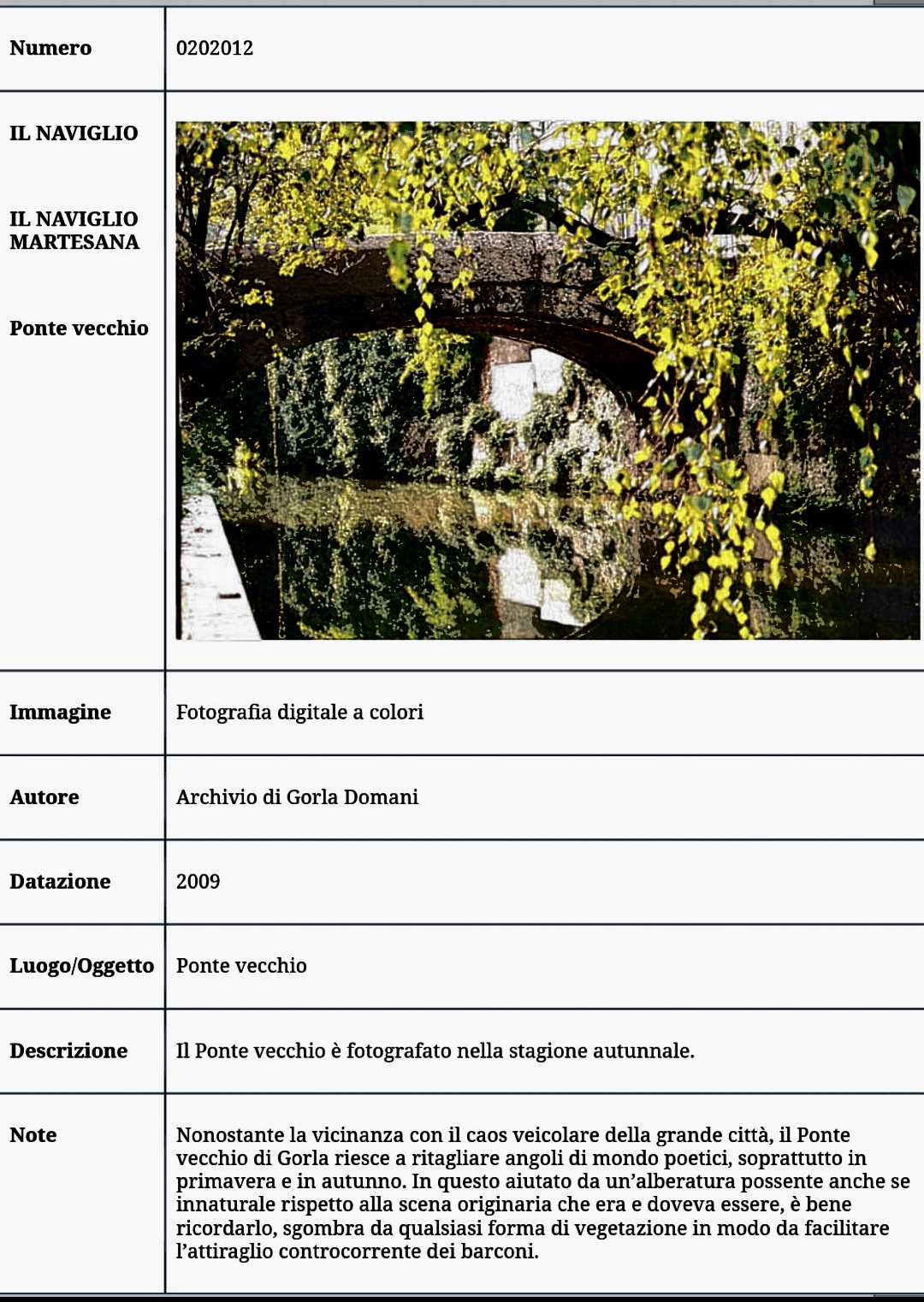 puntodiattraversamento del Naviglio del Martesana lungo la direttrice Precotto-Turro.Negli scorsi anni le aree di Gorla, a nord del Naviglio, e di Turro, a sud, erano ancora principalmente agricole ed il Ponte Vecchio era moltoutilizzato dai contadini della zona per le loro necessità.